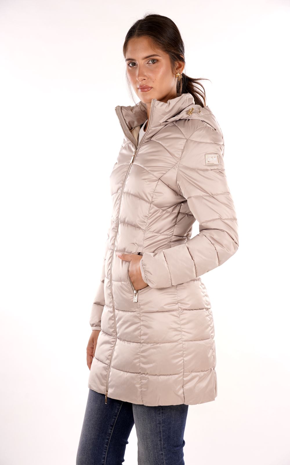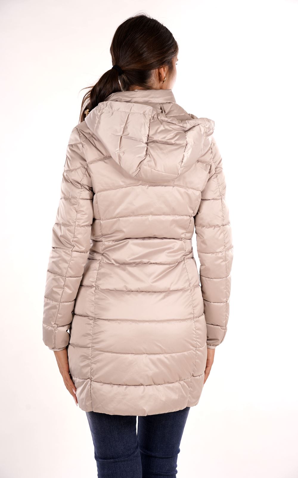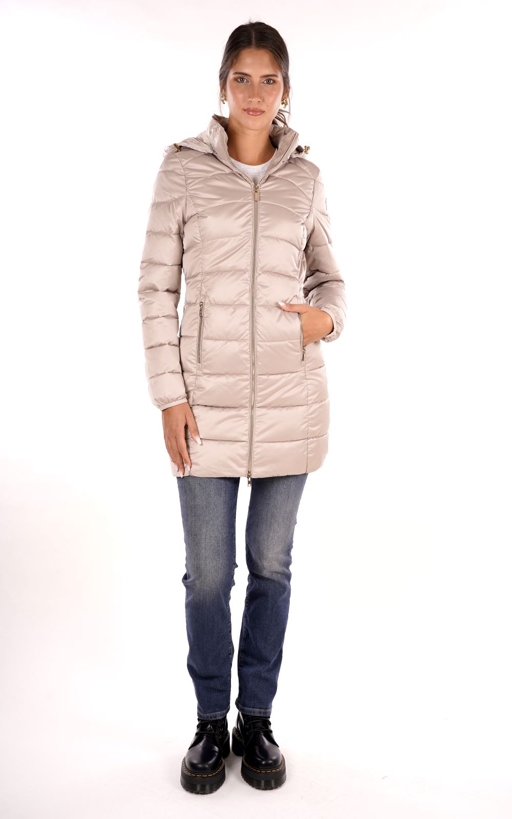 Piumino lungo trapuntato con cappuccio slim fit